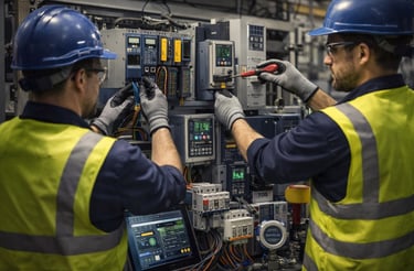 Maintenance industrielle sur site, diagnostic technique, maintenance préventive et corrective pour assurer la continuité et la performance des équipements industriels.